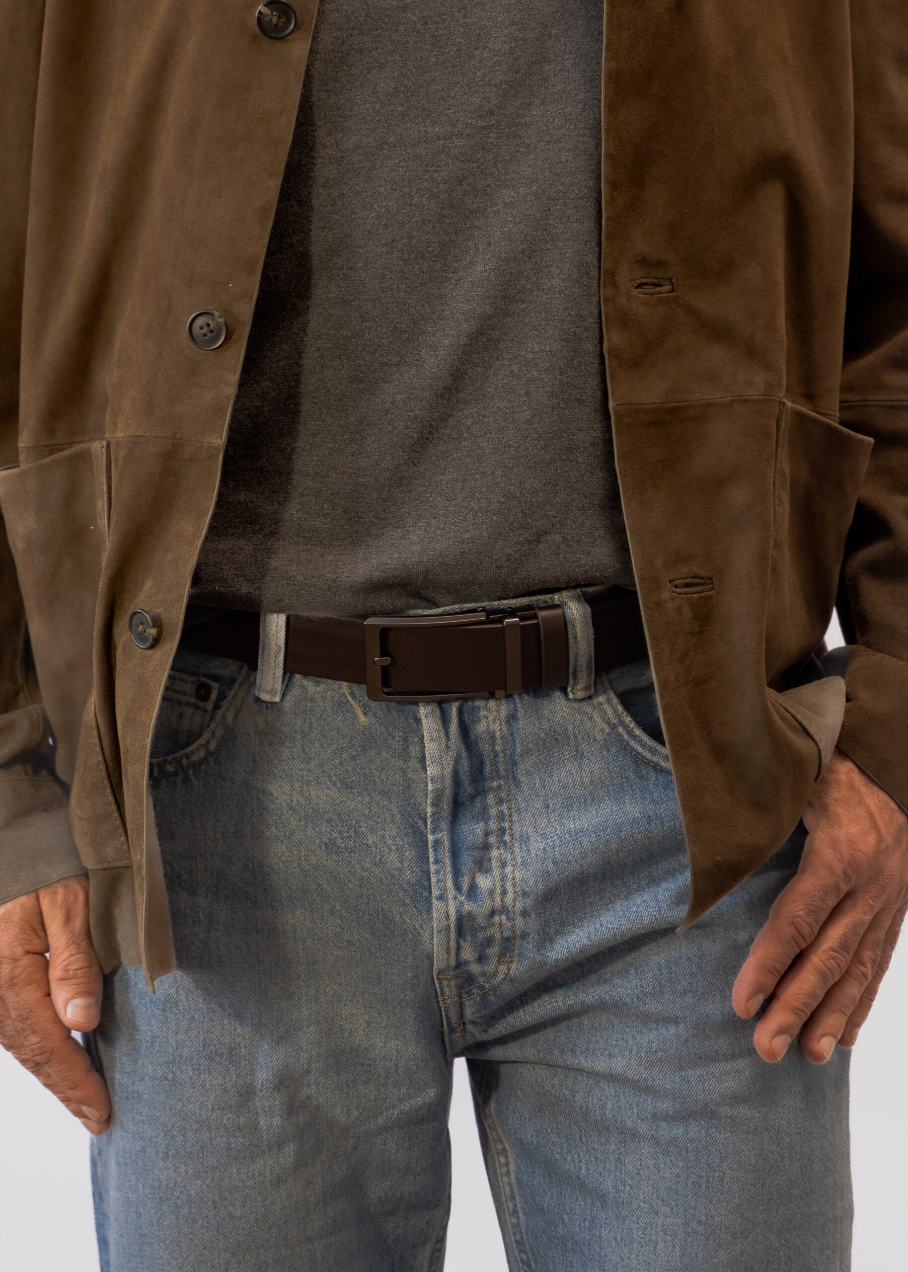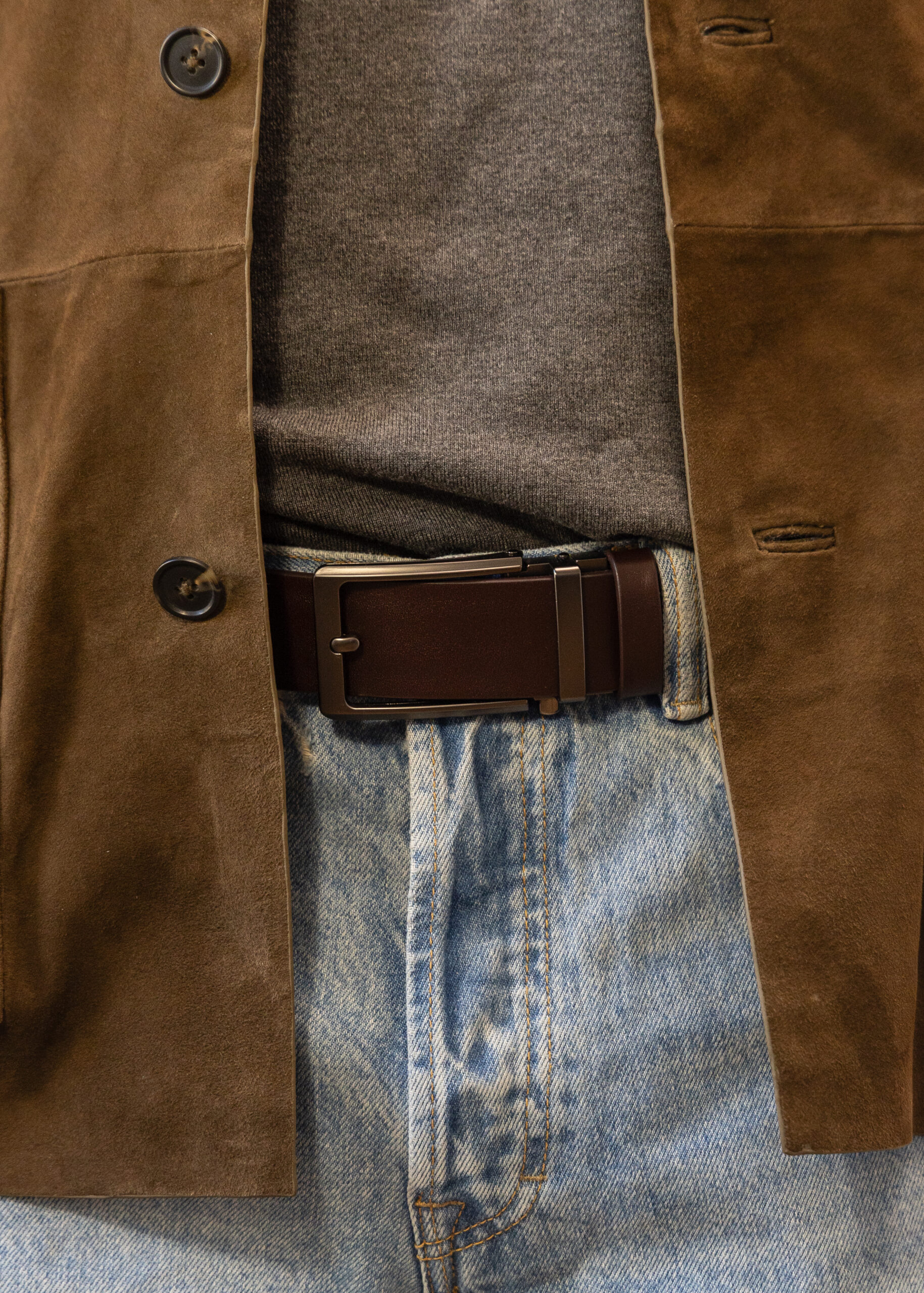 Med sin dybe brune tone og rene, minimalistiske design passer Atlas lige så godt til skræddersyede bukser og en skjorte som til jeans og sneakers. Det er et alsidigt herrelæderbælte, der fungerer både til kontordage og aftener ude.