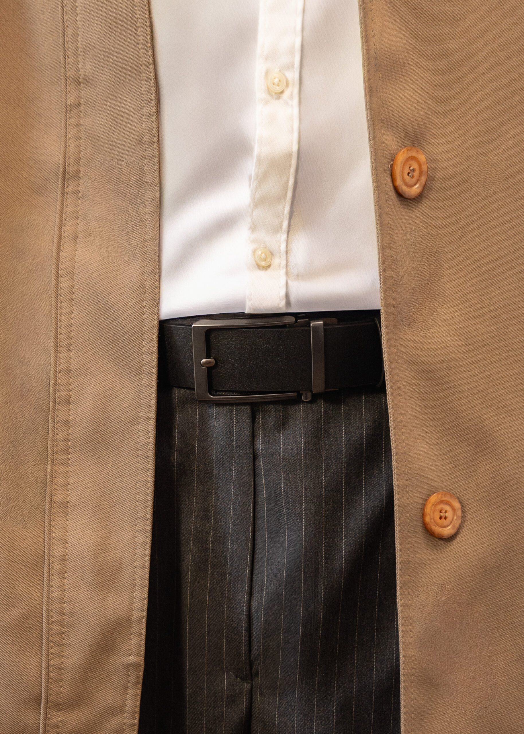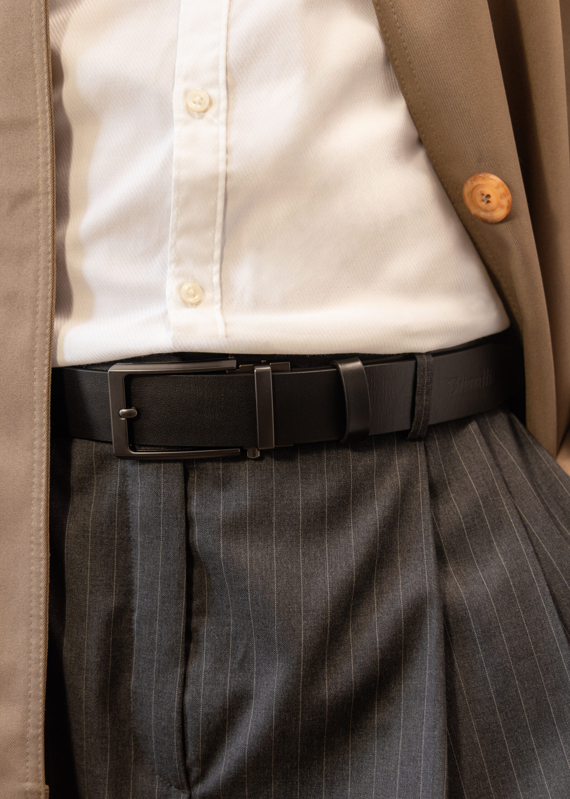 Med sin dybe sorte tone og rene, minimalistiske design passer Atlas lige så godt til skræddersyede bukser og skjorte som til jeans og sneakers. Det er et alsidigt læder herrerbælte, der fungerer både til kontordage og aftener ude.