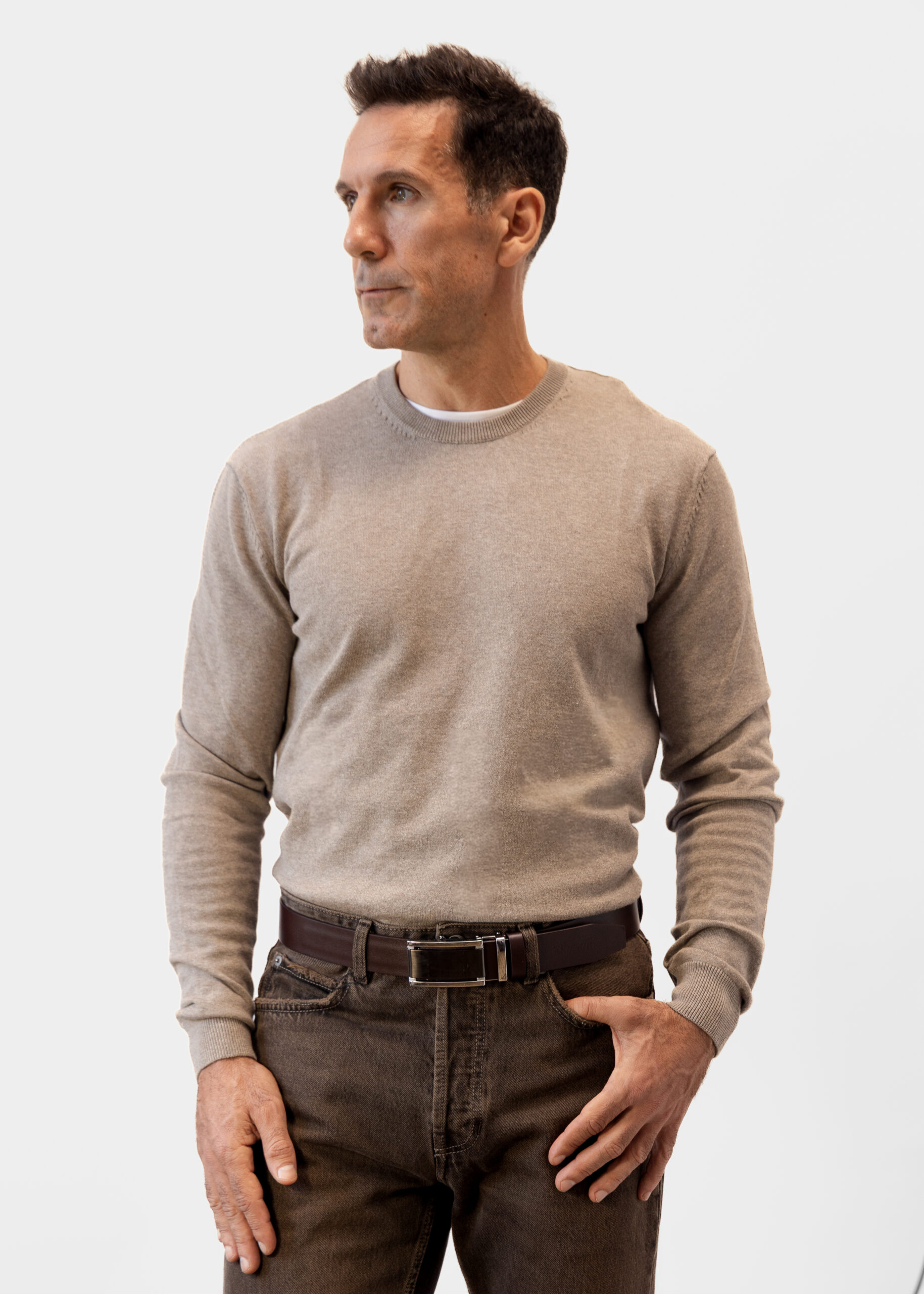 Med sin dybebrune tone og rene, minimalistiske design passer Orion lige så godt til skræddersyede bukser og en skjorte, som det gør til jeans og sneakers. Det er et alsidigt læderbælte til mænd, der fungerer både til kontordage og aftener i byen.