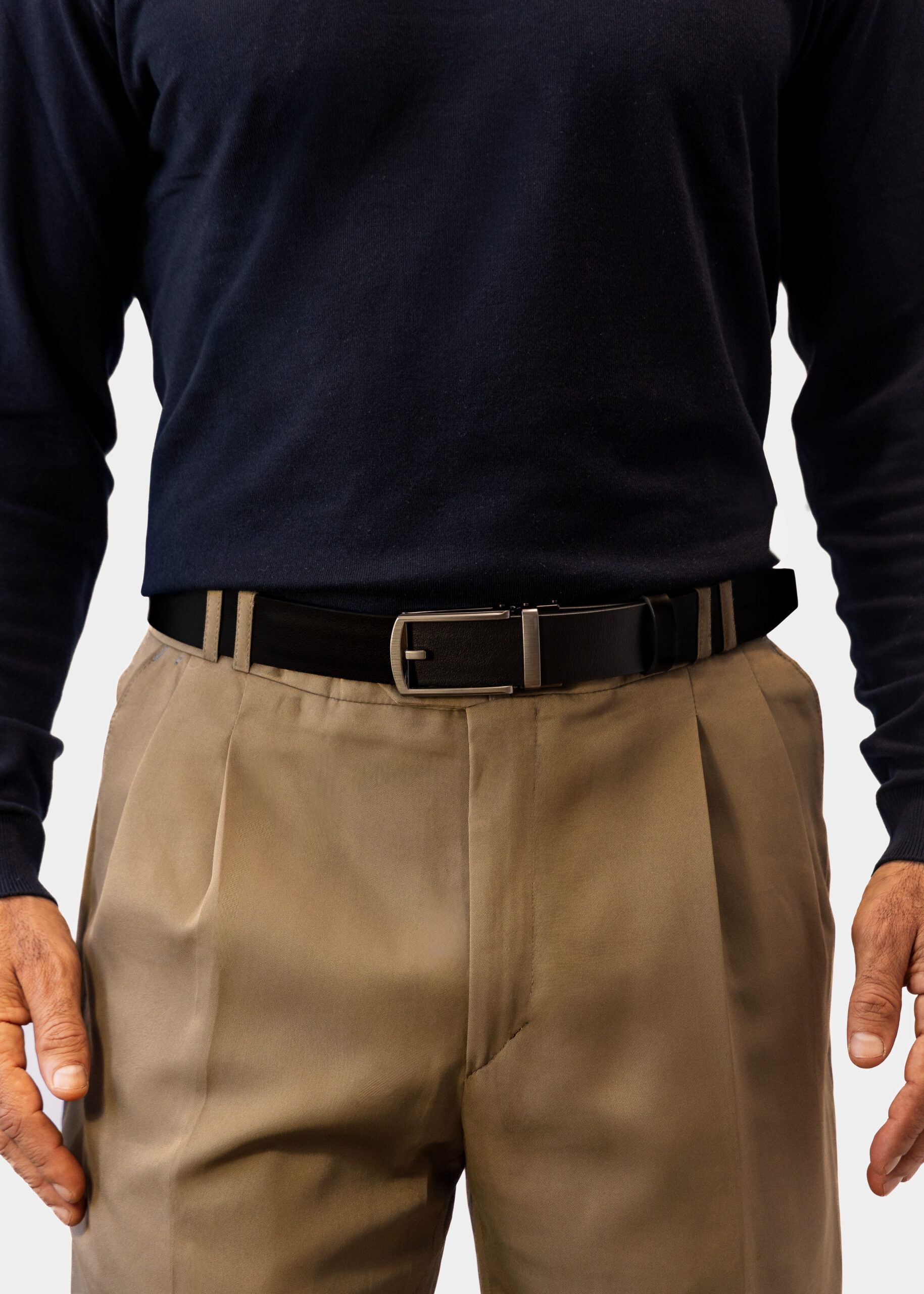 Vælg Titan, hvis du ønsker et højkvalitets sort læderbælte med en smart automatisk spænde, der ser skarpt ud og føles endnu bedre hver gang, du bærer det.