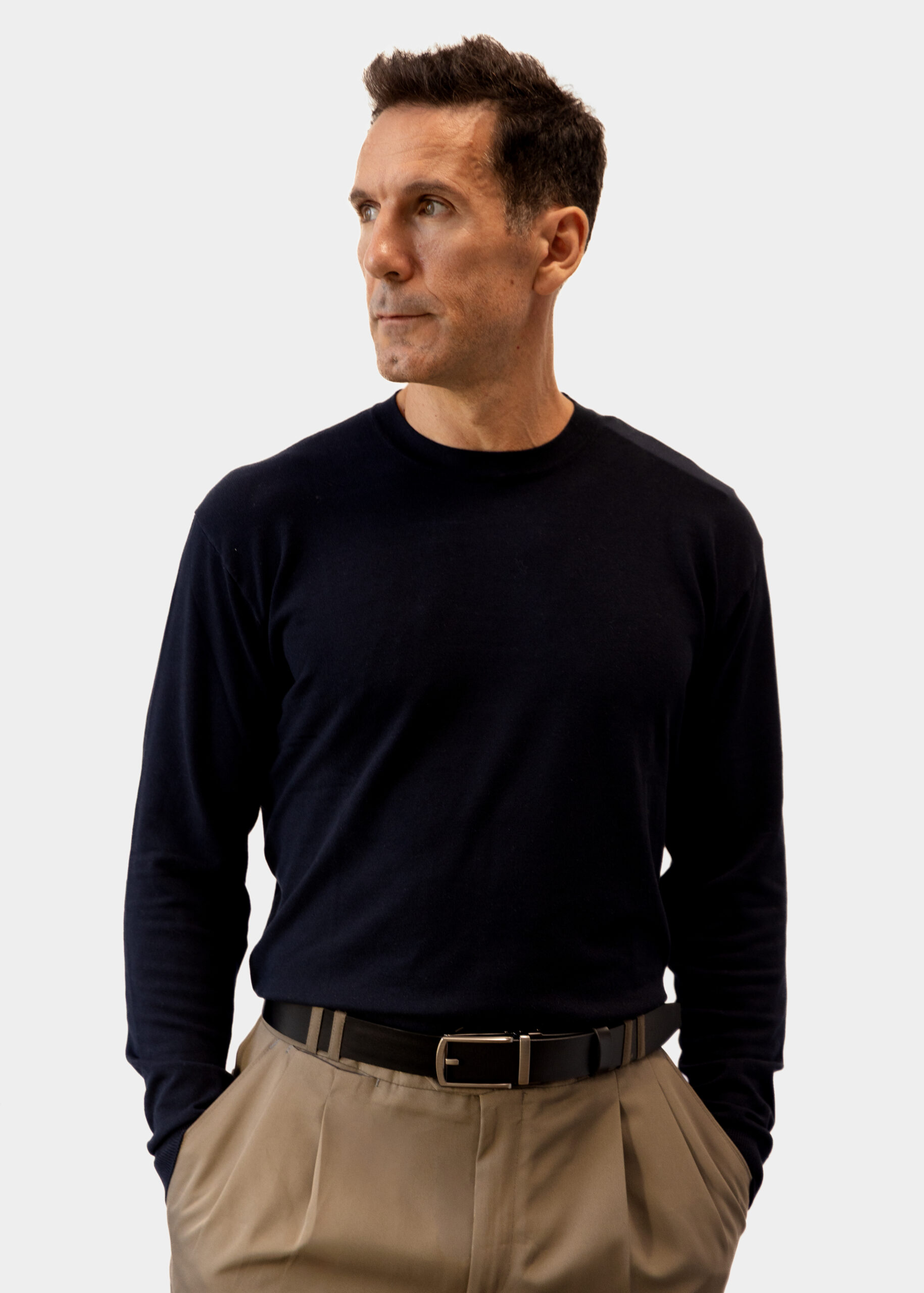 Med sin dybe sorte tone og rene, minimalistiske design passer Titan lige så godt til skræddersyede bukser og skjorte som til jeans og sneakers. Det er et alsidigt herrelæderbælte, der fungerer både til kontordage og aftener ude.